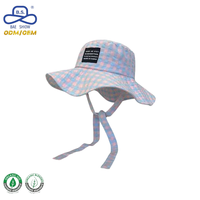 Wholesale Vintage Colorful Plaid Checked Bucket Hats with Windproof String Design Custom Patches for Women Camping Casual Wear
