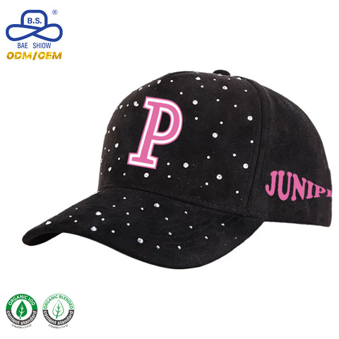 2025 Trending Custom Baseball Caps for Women Men Sporty Dot Bows Rhinestone Decoration Oxford Denim Suede Fabric for Casual Use