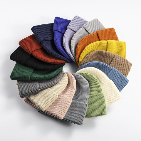 Wholesale Winter Plain Solid Colors Knitted Beanie Hats with Cuff Fur Ball Design Decoration for Winter Traveling Daily Wear